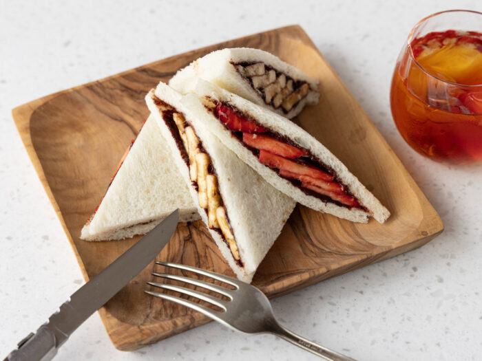 チョコレートペーストとフルーツをサンドするだけのシンプルなサンドイッチですが、パンに少し水分を…