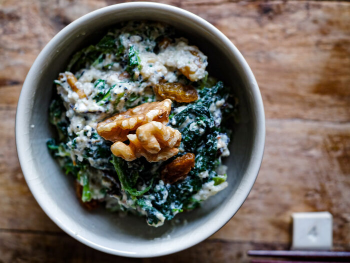 ほうれん草×きくらげ×切り干し大根で、鉄やカルシウム・マグネシウム。豆腐のたんぱく質、くるみの…