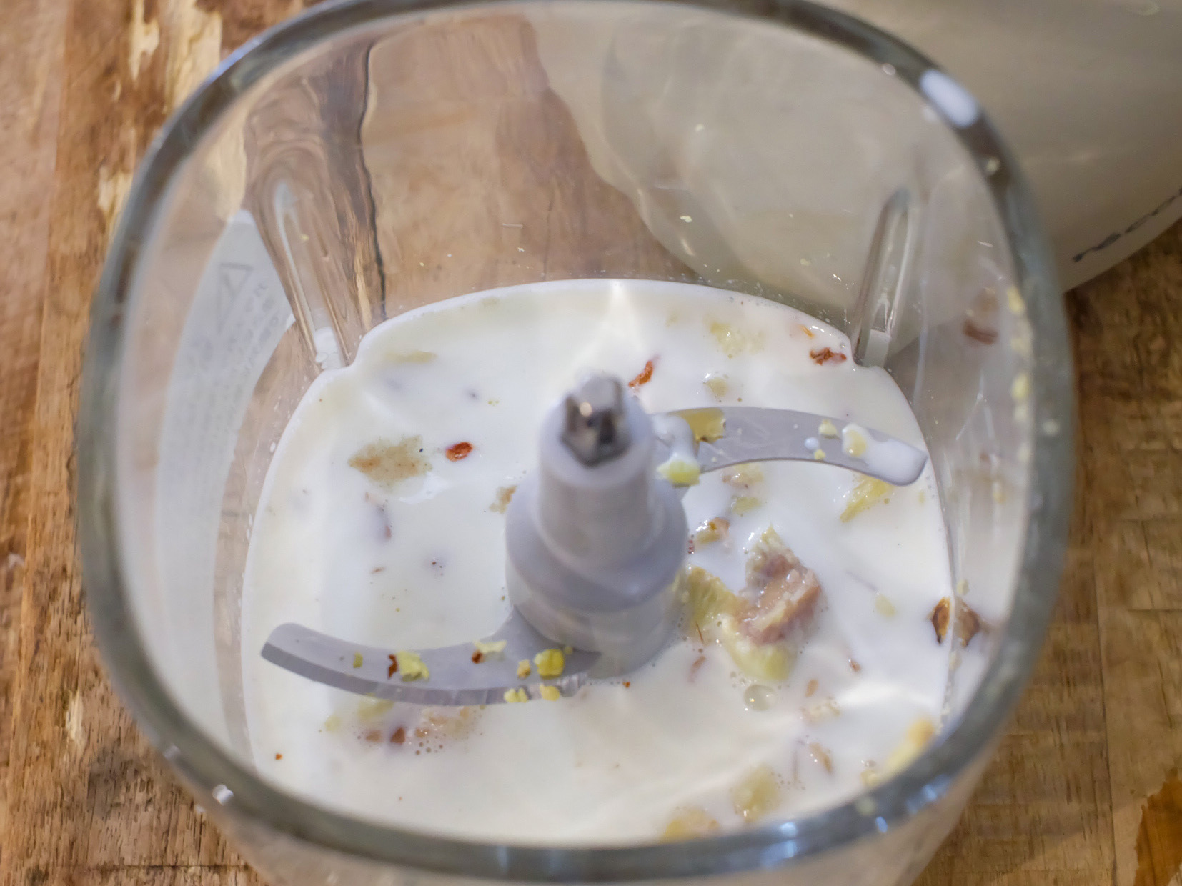 • 1.攪拌します。茹で栗、ミルク、ココナッツシュガー、岩塩をブレンダーで攪拌します。少し粒が残る程度でも、ほくほくとした食感が楽しめます。
