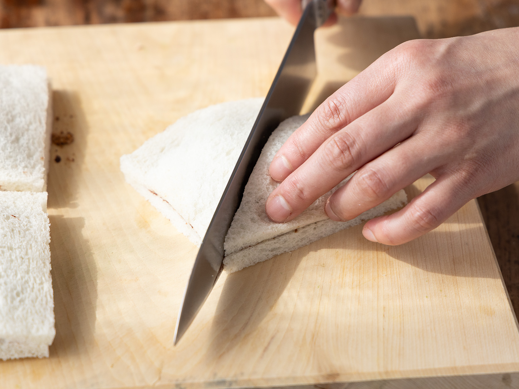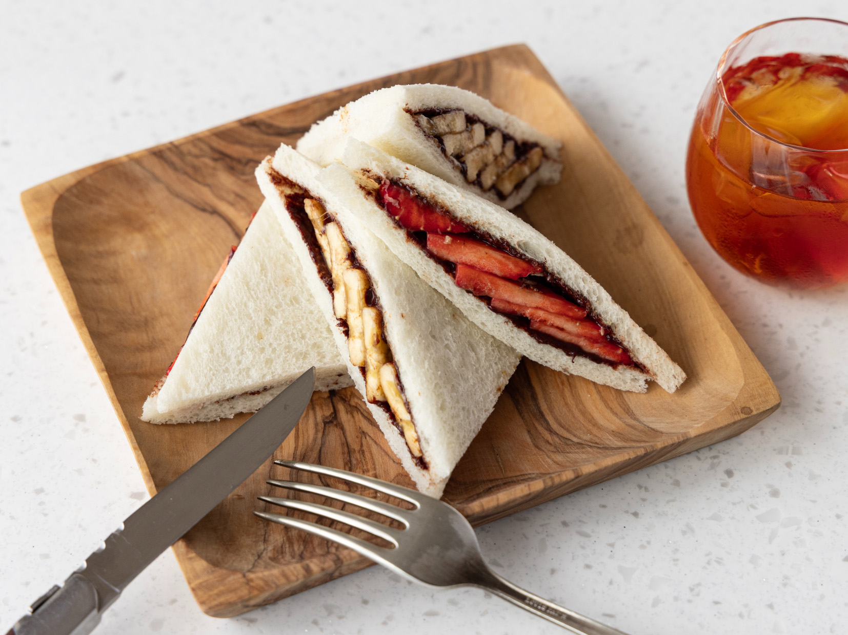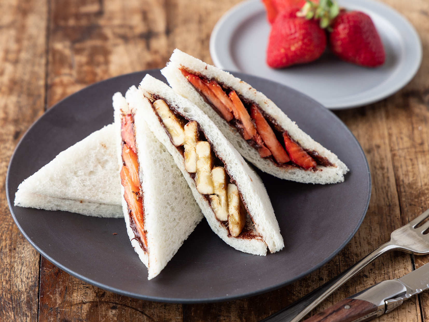 チョコレートペーストとフルーツをサンドするだけのシンプルなサンドイッチですが、パンに少し水分を加えることで、とてもしっとりとした柔らかい仕上がりになります。上質なチョコレートペーストとフルーツの味わいがシンプルに楽しめ日々のおやつや朝食におすすめです。