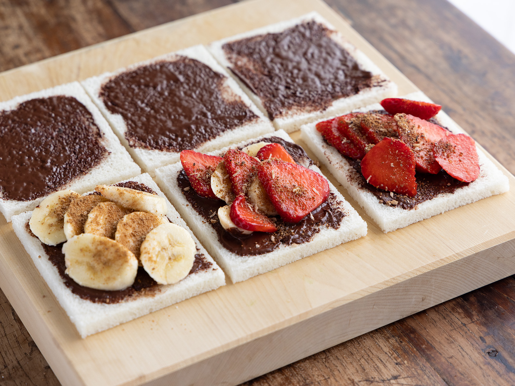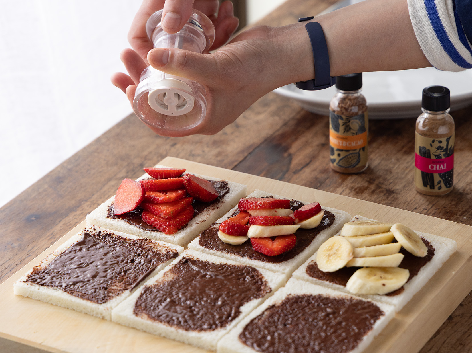 柔らかしっとり!チョコレートスプレッド、シーズニングシュガーのフルーツサンド