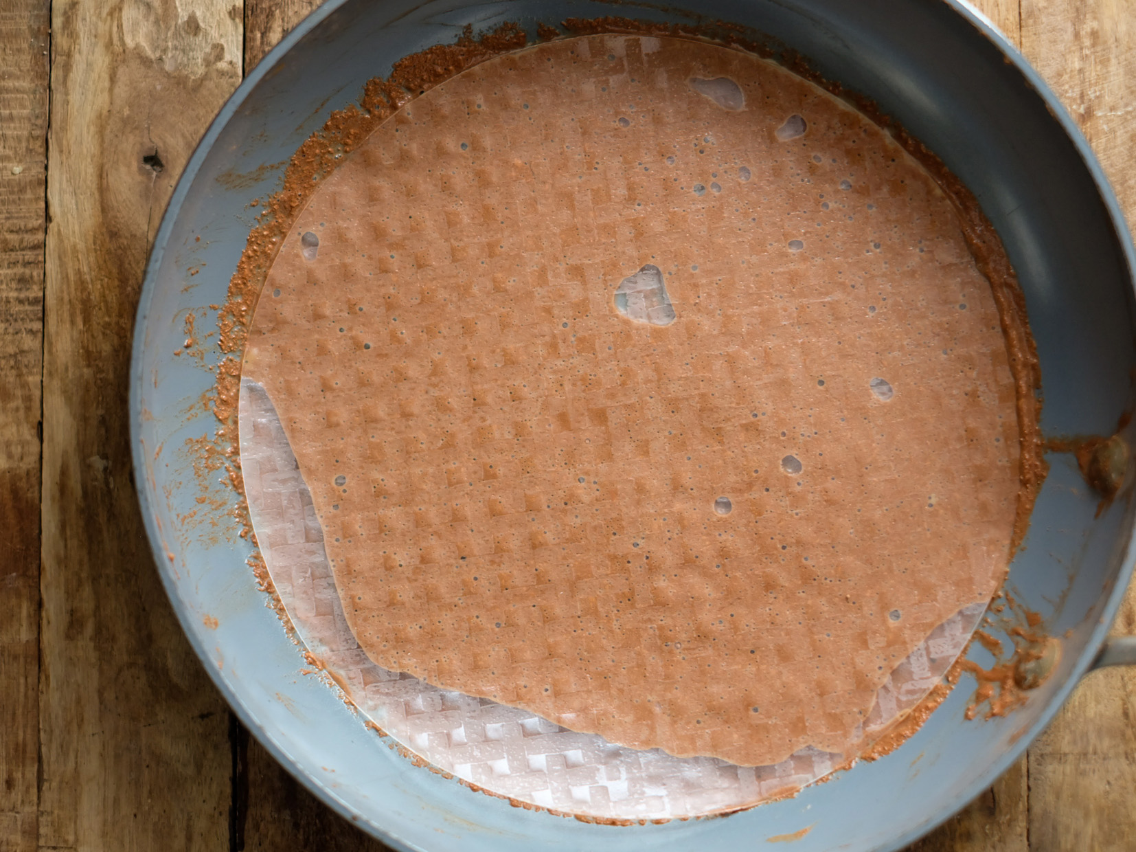 • ②ライスペーパーをくぐらせる ライスペーパーを2〜3枚重ね、アパレイユに数十秒浸します。